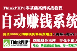 thinkphp5入门、自动赚钱系统前端、后端的开发,也包括了微信登录,微信支付,支付宝支付,会员管理、订单结算等技术内容,还包括系统推销的文案撰写,推广技巧等一系列内容。